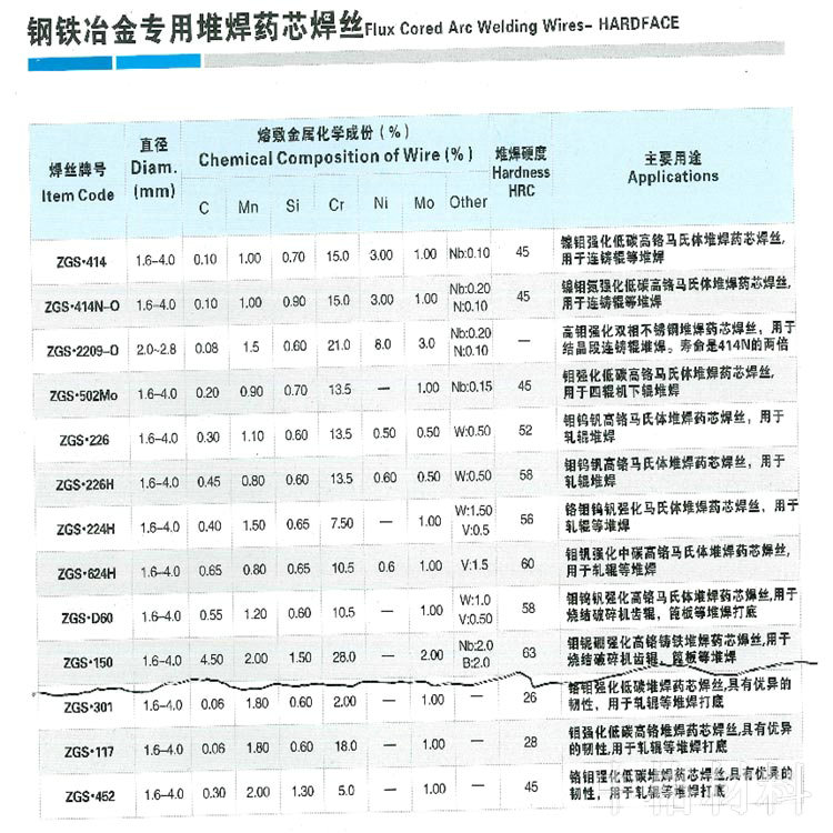 網(wǎng)站關(guān)鍵字: 株洲中格材料科技有限公司,株洲典型硬面藥芯焊絲,堆焊焊條