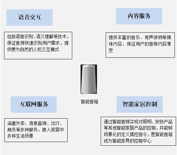 智能音箱是在傳統(tǒng)音箱基礎(chǔ)上增加了智能化功能,這功能體現(xiàn)在兩方面:一是技術(shù)上具備WiFi鏈接可語音交互;二是功能上可提供音樂、有聲讀物等內(nèi)容服務(wù)、互聯(lián)網(wǎng)服務(wù)以及場(chǎng)景化智能家居控制能力。