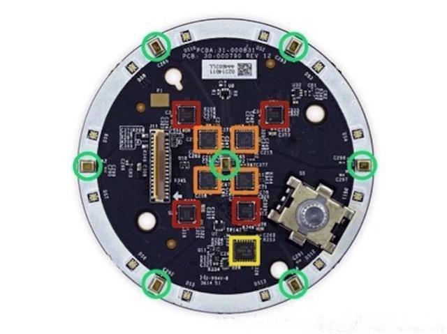 下圖展示了 Echo 拆解后的部件??梢钥吹?,智能音箱的硬件并不算復(fù)雜(相對(duì)于無人駕駛等“重型”AI 產(chǎn)品)。