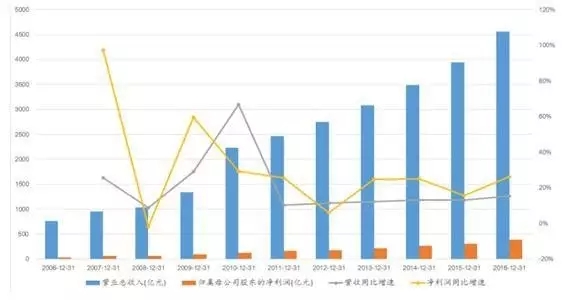 根據(jù)對計算機行業(yè)上市公司2016年度及2017年第一季度經(jīng)營業(yè)績的總結情況來看。2016年度計算機行業(yè)上市公司實現(xiàn)的營業(yè)總收入累計為4,556.64億元,相較于2015年度的3,948.50億元同比增長了15.40%。而2017年第一季度實現(xiàn)的營業(yè)總 收入為817.96億元,相較于2016年第一季度的796.12億元,同比增長了2.74%。